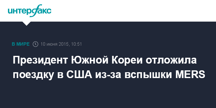 Москва. 10 июня. INTERFAX.RU - Президент Южной Кореи Пак Кын Хе отложила запланированный на эти выходные визит в США для проверки того, как идет борьба со вспышкой коронавируса (MERS) в стране. Об этом сообщает "Би-би-си".