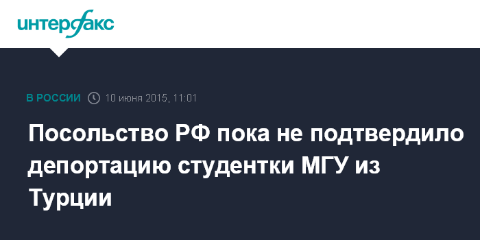 Москва. 10 июня. INTERFAX.RU – Посольство РФ в Турции не может подтвердить информацию о депортации в четверг задержанной на турецко-сирийской границе Варвары Карауловой.