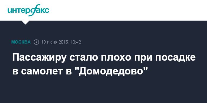 Москва. 10 июня. INTERFAX.RU - Одному из пассажиров рейса Москва - Астрахань стало плохо при посадке в самолет в столичном аэропорту "Домодедово", сообщил в среду "Интерфаксу" источник в экстренных службах.