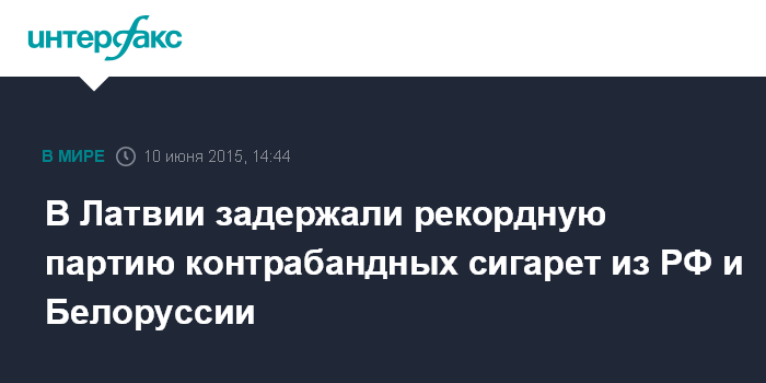 Москва. 10 июня. INTERFAX.RU - Управление таможенной полиции Службы госдоходов (СГД) Латвии задержало в Лудзе (Ludzа) шестерых человек за незаконный ввоз из России более 32,7 млн контрабандных сигарет, сообщили агентству BNS в среду в СГД.