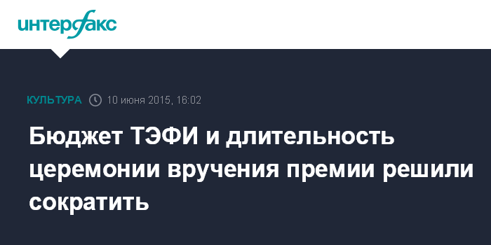 Москва. 10 июня. INTERFAX.RU - Комитет индустриальных телепремий сократил вдвое бюджеты своей организации и церемонии вручения национальной телевизионной премии ТЭФИ, сообщил президент совета комитета Михаил Швыдкой.
