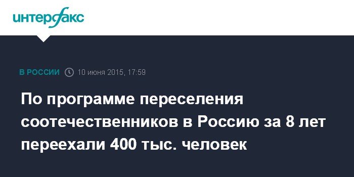 По программе переселения соотечественников в Россию за 8 лет переехали 400 тыс. человек