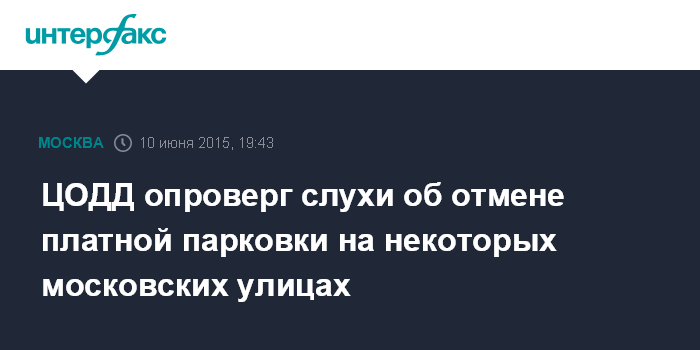 Москва. 10 июня. INTERFAX.RU - В центре организации дорожного движения (ЦОДД) заявляют, что появившаяся в интернете информация об отмене платной парковки на некоторых улицах столицы не соответствует действительности.
