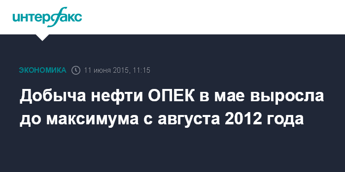 Москва. 11 июня. INTERFAX.RU – Поставки нефти странами ОПЕК в мае выросли на 50 тыс. баррелей в сутки, до 31,33 млн баррелей в сутки (б/с), что является максимальным уровнем с августа 2012 года, следует из данным Международного энергетического агентства.