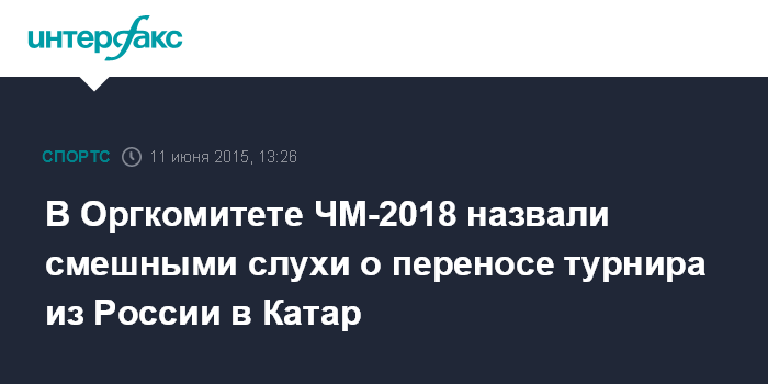 Москва. 11 июня. INTERFAX.RU - Генеральный директор Оргкомитета "Россия-2018" Алексей Сорокин не стал комментировать слухи о переносе чемпионата мира по футболу в Катар.