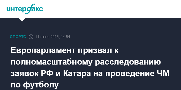 Европарламент призвал к полномасштабному расследованию заявок РФ и Катара на проведение ЧМ по футболу