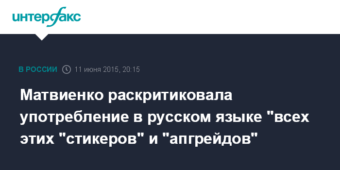 "Сплошь и рядом мы сталкиваемся с механическим, полностью произвольным перемещением слов из иностранного языка в русский. Зачем всем нам эти "стикеры", "постеры", "апгрейды", когда в нашем родном языке есть идентичные термины: "наклейка", "плакат", "обновление". У нас пропало полностью слово "продавец", зато появилось словосочетание "менеджер по продажам", хотя суть осталась та же самая", - посетовала Матвиенко.