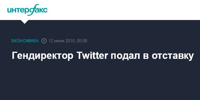 Москва. 12 июня. INTERFAX.RU - Генеральный директор Twitter Дик Костоло уходит в отставку. Должность временно займет сооснователь сервиса микроблогов Джек Дорси.