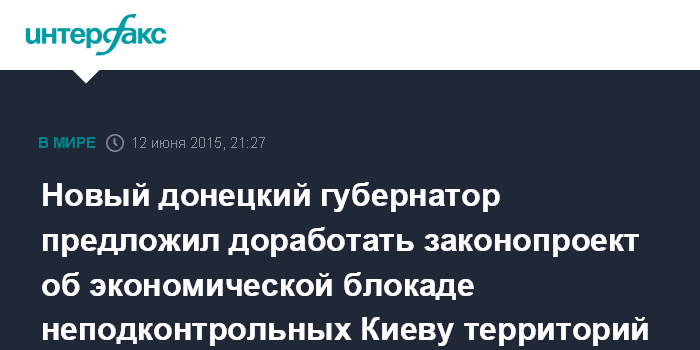 Москва. 12 июня. INTERFAX.RU - Новый глава Донецкой областной государственной администрации (ОГА) Павел Жебривский выступает за доработку законопроекта "об экономической блокаде оккупированных территорий".