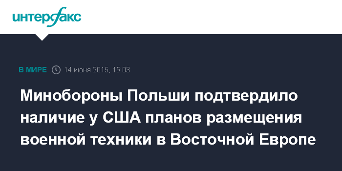 Москва. 14 июня. INTERFAX.RU - США намерены принять решение о размещении тяжелой военной техники в восточноевропейских странах в ближайшее время, заявил министр обороны Польши Тадеуш Семоняк.