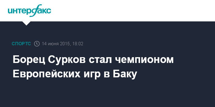 Москва. 14 июня. INTERFAX.RU - Чемпион России-2014 по греко-римской борьбе Артем Сурков стал победителем первых Европейских игр, проходящих в Баку.