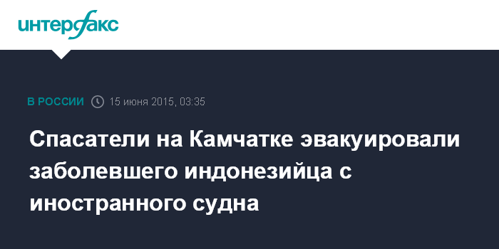 Москва. 15 июня. INTERFAX.RU - Камчатские спасатели доставили на берег заболевшего иностранного моряка с судна MSC "Flawia" под флагом Панамы, сообщила в понедельник пресс-служба краевого главка МЧС.