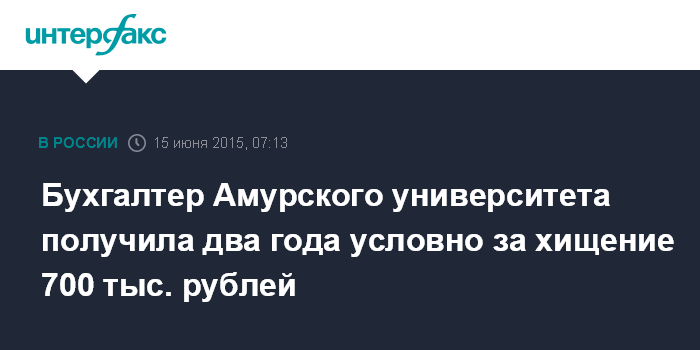 Бухгалтер Амурского университета получила два года условно за хищение 700 тыс. рублей