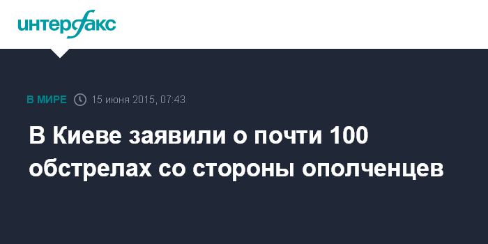 Москва. 15 июня. INTERFAX.RU - За прошедшие сутки вооруженные формирования непризнанных ДНР и ЛНР обстреляли позиции украинских военных почти 100 раз. Об этом сообщает пресс-центр штаба силовой операции на востоке страны.