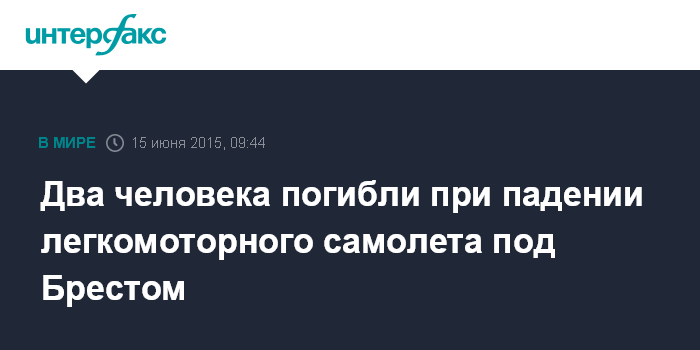 Москва. 15 июня. INTERFAX.RU – Ил-103 РУП "Беллесавиа" разбился в воскресенье неподалеку от брестского аэропорта, есть жертвы, сообщили агентству "Интерфакс" в пресс-службе министерства по чрезвычайным ситуациям Беларуси.