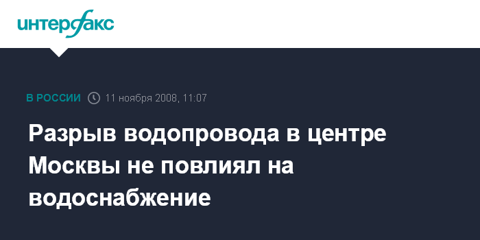 Разрыв водопровода в центре Москвы не повлиял на водоснабжение