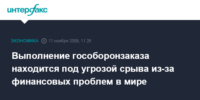 Выполнение гособоронзаказа находится под угрозой срыва из-за финансовых проблем в мире