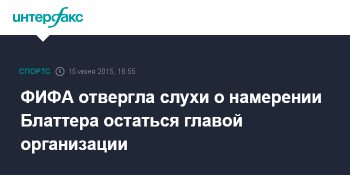 Москва. 15 июня. INTERFAX.RU - В Международной федерации футбола (ФИФА) заверили, что слухи о планах главы организации Йозефа Блаттера остаться на посту, несмотря на недавние заявления об отставке, не имеют под собой оснований.