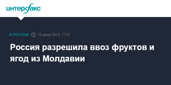 Москва. 15 июня. INTERFAX.RU - Россельхознадзор разрешил ряду хозяйств Молдавии в тестовом режиме возобновить поставки фруктов в Россию.