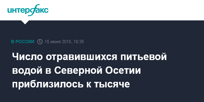 Москва. 15 июня. INTERFAX.RU - Количество пострадавших в результате массового кишечного отравления некачественной питьевой водой в Северной Осетии составило 958 человек, сообщил на заседании правительства региона в понедельник врио министра здравоохранения Таймураз Ревазов.