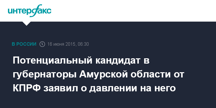 Москва. 16 июня. INTERFAX.RU - Амурское отделение КПРФ обратилось в прокуратуру после того, как потенциальный кандидат в губернаторы Амурской области Юрий Фокин отказался от намерений баллотироваться на выборы из-за оказанного на него давления.