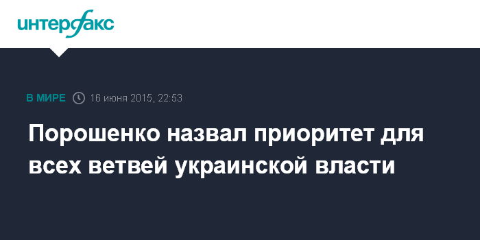 Москва. 16 июня. INTERFAX.RU - Президент Украины Петр Порошенко в ходе совещания по выполнению требования Евросоюза для введения безвизового режима для украинских граждан заявил, что работа над этим должна быть приоритетом работы для всех ветвей власти.