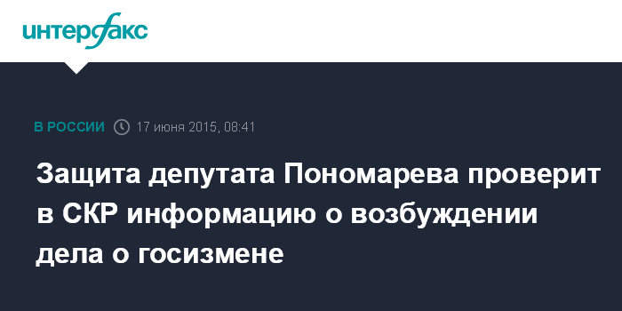 Защита депутата Пономарева проверит в СКР информацию о возбуждении дела о госизмене