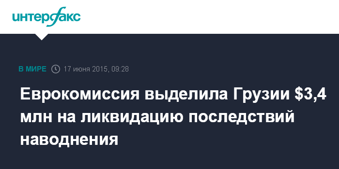 Москва. 17 июня. INTERFAX.RU - Европейская комиссия приняла решение предоставить Грузии $3,4 млн в качестве финансовой помощи для ликвидации последствий разрушительного наводнения в Тбилиси, сообщает грузинское представительство ЕС.
