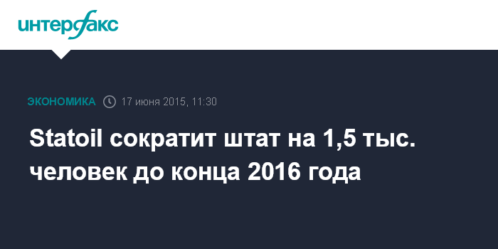 Потенциальное сокращение штата оценивается 1,1-1,5 тыс. человек до конца 2016 года, сообщается в пресс-релизе компании. В Statoil работает почти 23 тыс. сотрудников в 37 странах. Кроме того, Statoil продолжит снижение числа консультантов.