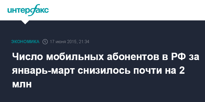 Москва. 17 июня. INTERFAX.RU - Количество абонентов сотовых операторов в России в I квартале 2015 года сократилось на 0,8% по сравнению с IV кварталом 2014 года, составив 238,4 млн, подсчитали аналитики AC&M-Consulting.