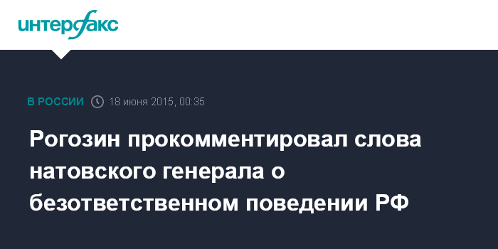 Рогозин прокомментировал слова натовского генерала о безответственном поведении РФ