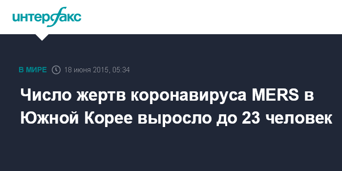 Число жертв коронавируса MERS в Южной Корее выросло до 23 человек