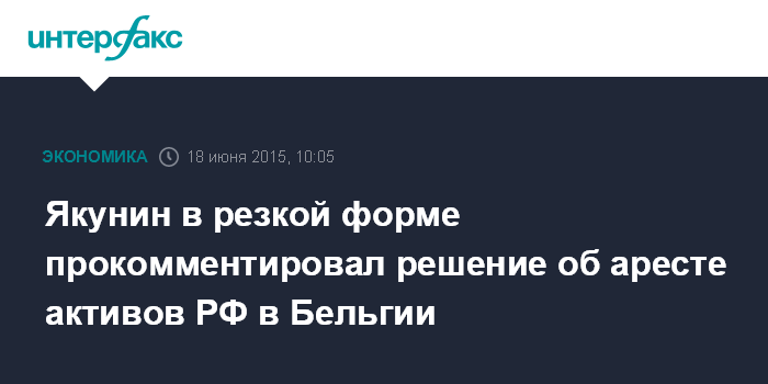 Якунин в резкой форме прокомментировал решение об аресте активов РФ в Бельгии