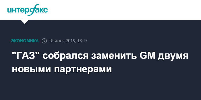 Москва. 18 июня. INTERFAX.RU – Группа "ГАЗ" рассчитывает, что место американского автопроизводителя General Motors вскоре займут новые партнеры, заявил председатель набсовета компании "Базовый элемент" (контролирует группу "ГАЗ") Олег Дерипаска на встрече с премьер-министром Дмитрием Медведевым.