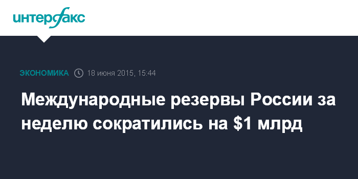 Москва. 18 июня. INTERFAX.RU – Международные резервы России на 12 июня составили $360,6 млрд, сообщил Банк России. По состоянию на 5 июня международные резервы равнялись $361,6 млрд. Таким образом, за неделю они уменьшились на $1 млрд.