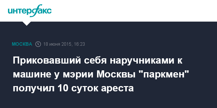 Приковавший себя наручниками к машине у мэрии Москвы "паркмен" получил 10 суток ареста