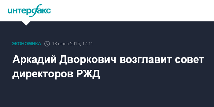Москва. 18 июня. INTERFAX.RU – Вице-премьер РФ Аркадий Дворкович возглавит совет директоров "РЖД". Об этом он заявил в интервью телеканалу "Россия 24".