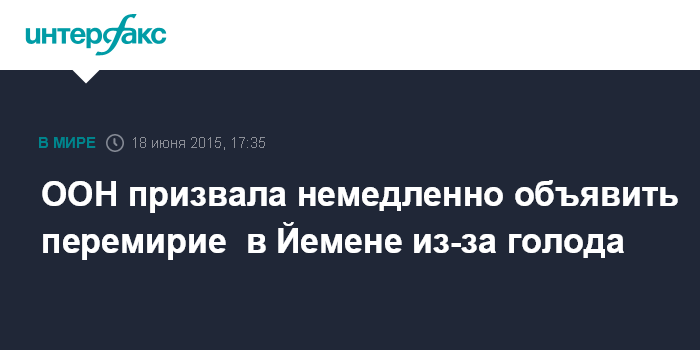 Москва. 18 июня. INTERFAX.RU - В результате вооруженного конфликта более половины населения Йемена голодает, сообщили в ООН.