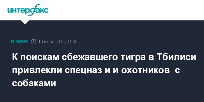Москва. 19 июня. INTERFAX.RU - В окрестностях Тбилиси у этнографического музея спецназовцы и охотники с собаками в пятницу начали прочесывание территории, на которой нескольким жителям города удалось сфотографировать на телефоны тигра, сбежавшего при наводнении из зоопарка.