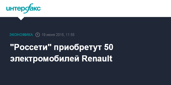 Москва. 19 июня. INTERFAX.RU – "Россети" и Renault подписали соглашение о стратегическом партнерстве, сообщила российская компания. Речь идет о формировании зарядной инфраструктуры для электротранспорта в России. В рамках соглашения "Россети" также планируют купить 50 электромобилей Renault.