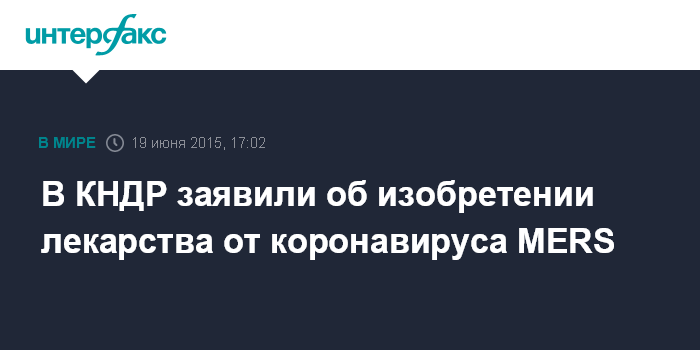 Москва. 19 июня. INTERFAX.RU - Фармацевтическая компания из КНДР сумела создать препарат "Кымдан-2", который весьма эффективен для лечения коронавируса MERS и для предотвращения его распространения, говорится в сообщении, распространенном по каналам Центрального телеграфного агентства Кореи.