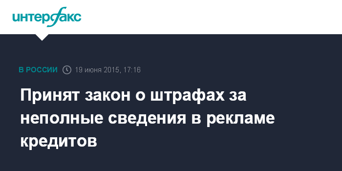 Принят закон о штрафах за неполные сведения в рекламе кредитов