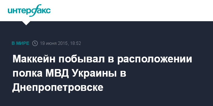 Москва. 19 июня. INTERFAX.RU - Сенатор от республиканской партии США Джон Маккейн в пятницу приехал в Днепропетровск, сообщил американский посол на Украине Джеффри Пайетт.