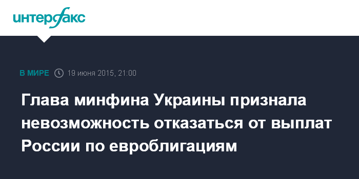 Глава минфина Украины признала невозможность отказаться от выплат России по евроблигациям