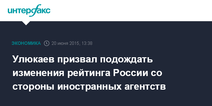 Москва. 20 июня. INTERFAX.RU - Изменения рейтинга России со стороны иностранных агентств придется подождать, считает министр экономического развития России Алексей Улюкаев.