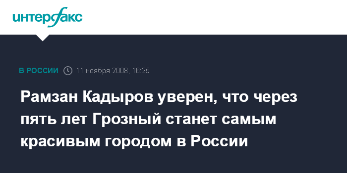 Москва. 11 ноября. INTERFAX.RU - Президент Чеченской республики Рамзан Кадыров поставил задачу превратить Грозный в один из самых красивых городов России.