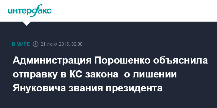 В субботу стало известно, Порошенко направил в Конституционный суд Украины представление относительно соответствия Конституции Украины закона "О лишении В.Януковича звания президента Украины".