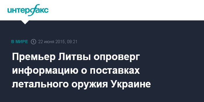Москва. 22 июня. INTERFAX.RU - Премьер Литвы Альгирдас Буткявичюс заявил, что никто из руководства республики не может принять решений о поставках оружия Украине, пока этот вопрос не рассмотрен на заседании Госсовета по обороне.