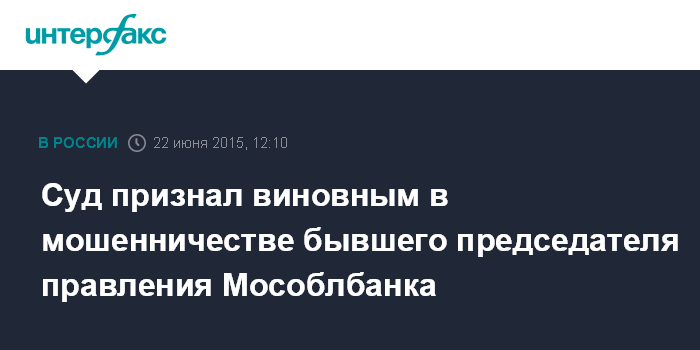 Суд признал виновным в мошенничестве бывшего председателя правления Мособлбанка