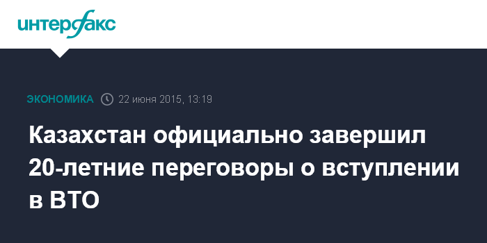 10 июня Казахстан завершил длившиеся почти 20 лет переговоры об условиях вступления в ВТО.